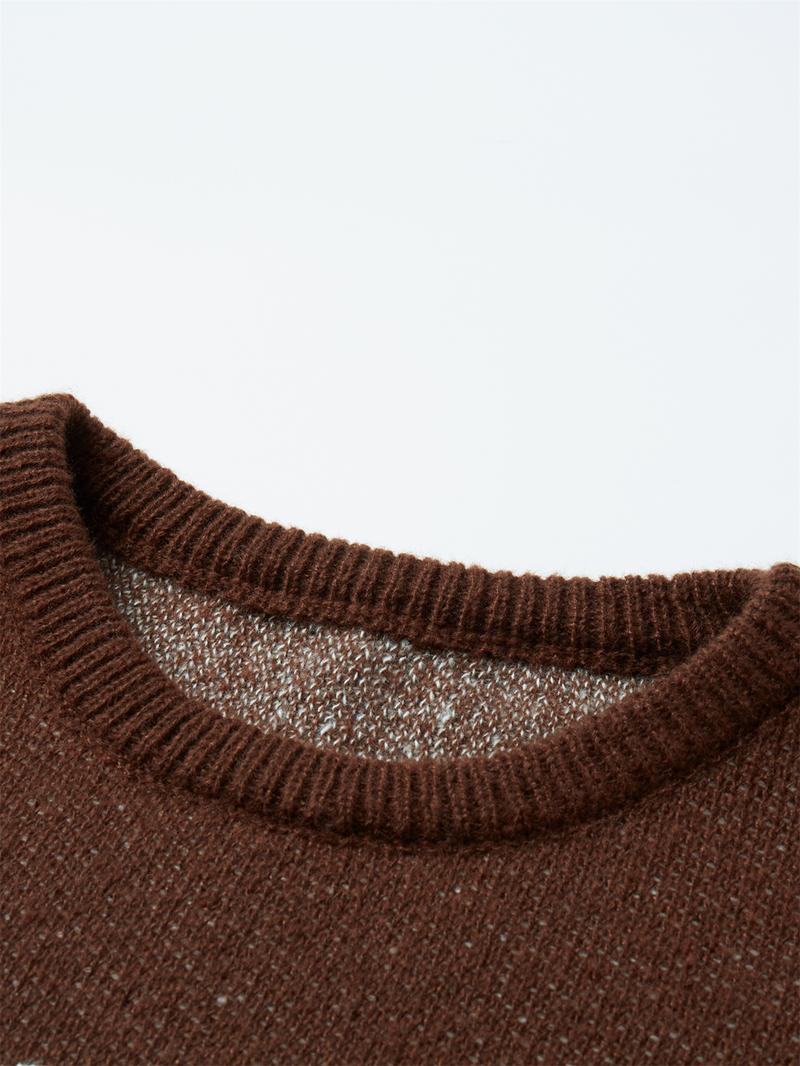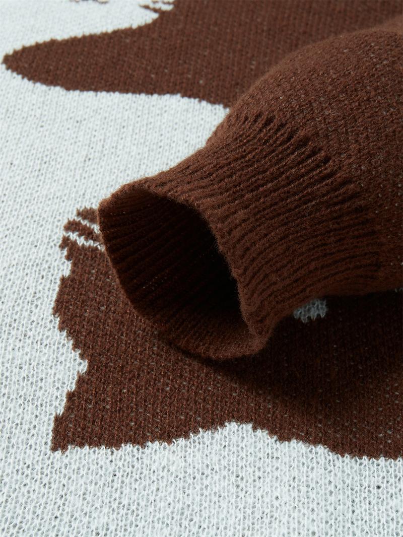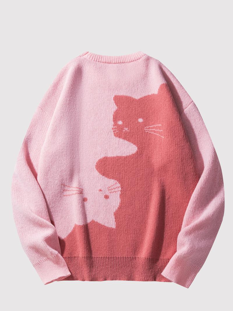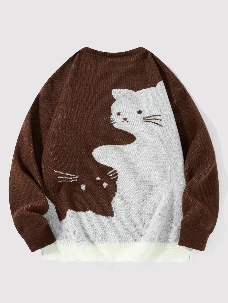 Love Love Men'S Cartoon Cat Jacquard round Neck Sweater Loose Casual Long Sleeve Knitted Sweater Autumn/Winter Fashion Men'S Knitted Sweater Daily Wearing Pullover Top Same Style for Men and Women Party Weekend Leisure Halloween Academy Style Work Outdoor
